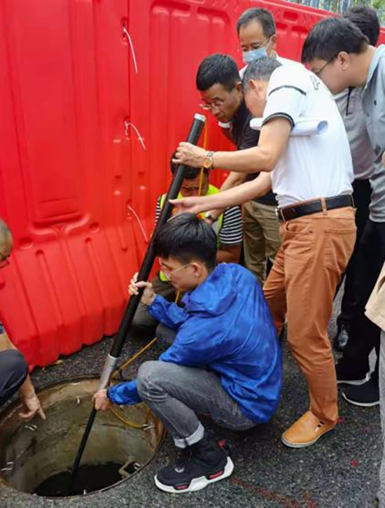 7月7日,深圳市地面坍塌防治領導小組辦公室副處長楊健君帶隊查看龍崗區平吉大道空洞隱患情況,深圳市地質環境監測院、龍崗區地防辦、龍崗區水務局、中國地質車載雷達檢測項目D包等有關領導、專家和作業人員參加。
