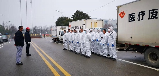 強調(diào)醫(yī)療廢物收運及處置安全要求 疫情就是命令,狠抓落實保安全 自1月21日起,徐州公司疫情應(yīng)急小組每日召開調(diào)度會,及時傳達各級環(huán)保部門及上級單位相關(guān)文件,掌握疫情動態(tài),并上報應(yīng)急處理及防控情況;班組每日召開晨會強調(diào)醫(yī)療廢物收運及處置安全要求;確保各項應(yīng)急物資供應(yīng)、到位;根據(jù)疫情情況,每日增加對廠區(qū)、處置車間的消毒次數(shù)。 1月25日,在得知徐州已有確診病例后,公司立即啟動應(yīng)急預(yù)案及相關(guān)措施:一是合理調(diào)整及安排人員休假,保證各項工作調(diào)度有序;二是在保障處置醫(yī)療廢物能力的同時,調(diào)整醫(yī)療廢物處置工藝,減少員工與醫(yī)療廢物接觸頻次;三是嚴(yán)格執(zhí)行醫(yī)療廢物和相關(guān)設(shè)施的消毒工作,對操作人員的防護和體溫進行持續(xù)監(jiān)測;四是做好員工的思想工作,穩(wěn)定員工隊伍,并做好隔離防護;五是及時掌握疫情發(fā)展動態(tài),對已有確診病例的醫(yī)院安排專人、專車收集,減少直接接觸;六是拓寬防護物資采購渠道,切實保障物資供應(yīng),同時做好出入庫登記。